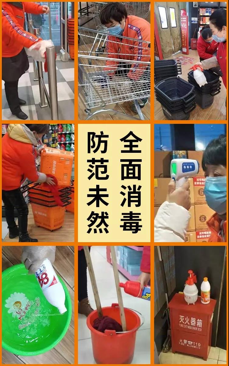 賣(mài)場(chǎng)內的各公共區域、進(jìn)出入口、收款臺、電梯扶手等人口密集區,每日多次消毒擦拭。為顧客營(yíng)造安心、安全的購物環(huán)境。