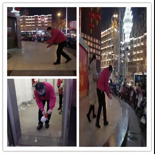 賣(mài)場(chǎng)外的走廊、電梯口,每一處死角都不放過(guò),門(mén)店經(jīng)理、員工、保潔,全員齊上陣,做好賣(mài)場(chǎng)外的消毒保障工作。