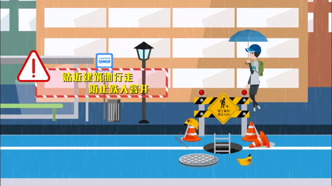 1:暴雨期間,盡量不要外出。必須外出時(shí),應盡可能繞開(kāi)積水嚴重的地段。