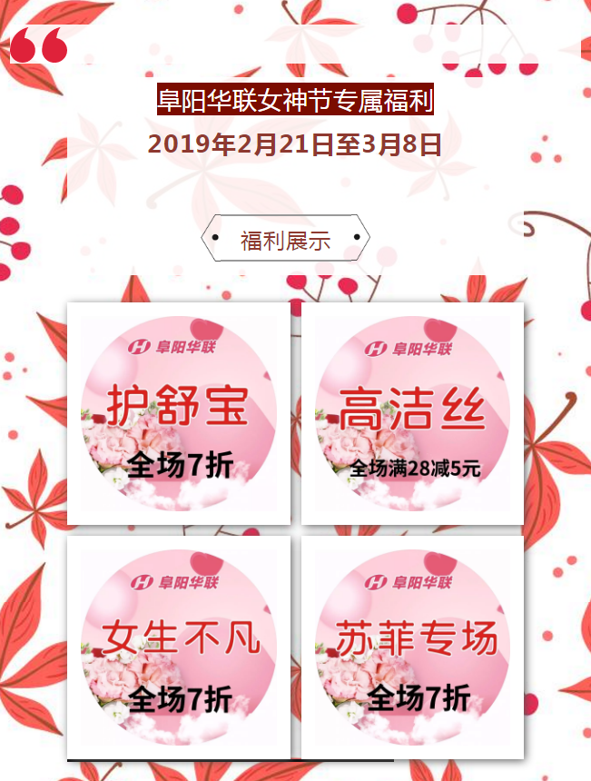 【阜陽(yáng)華聯(lián)】| 女神節,您要的福利都在這,拿走,不謝!