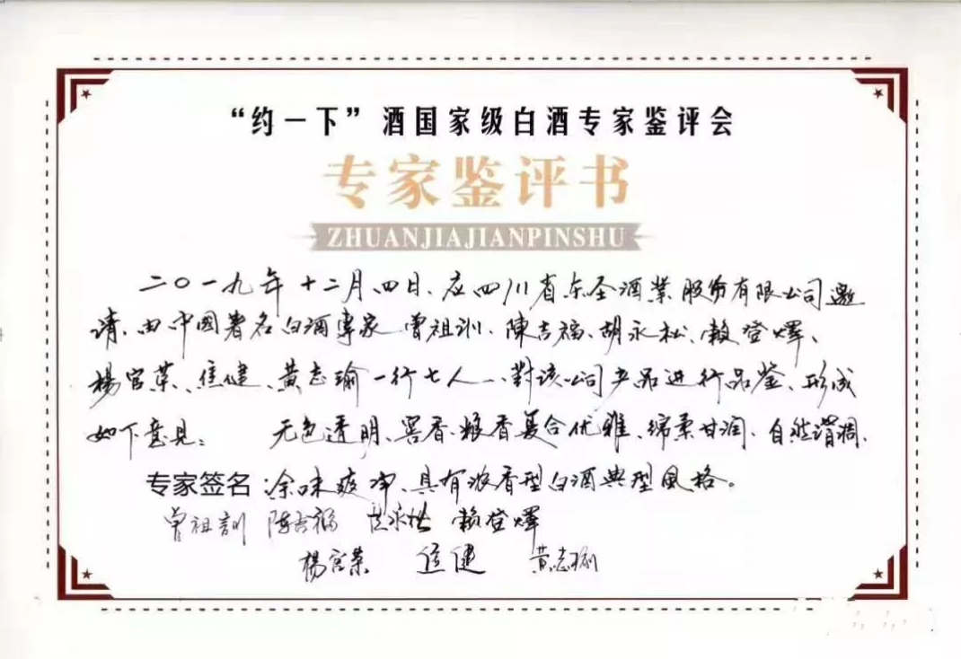 7位國家級品酒專(zhuān)家對“約一下”的評鑒書(shū)