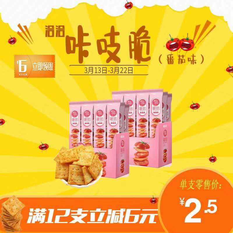 3月13日至22日,華聯(lián)各門(mén)店購買(mǎi)洽洽喀吱脆(番茄味),滿(mǎn)12支立減6元