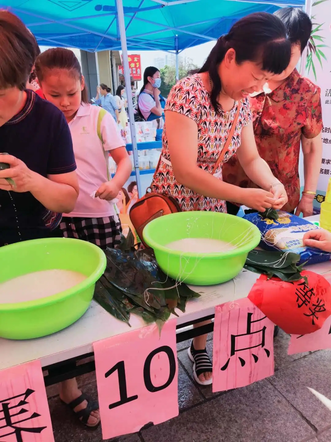 包粽子大賽現場(chǎng),選手們麻利的動(dòng)作,嫻熟的手法吸引了許多顧客的圍觀(guān)