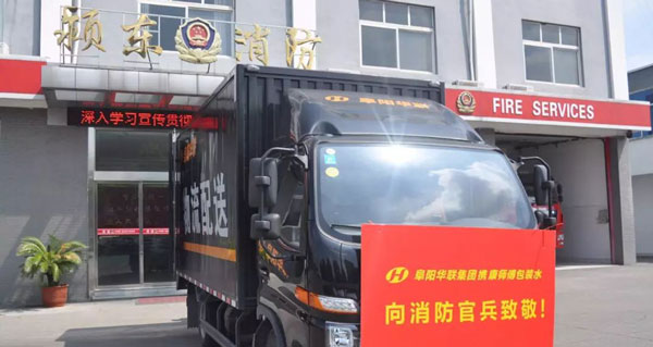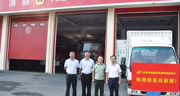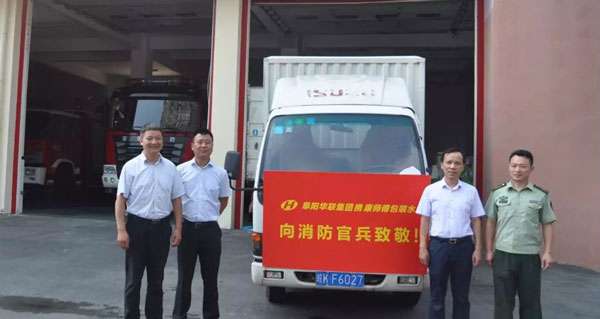 阜陽(yáng)華聯(lián)集團慰問(wèn)消防官兵:值此建軍91周年之際,8月1日阜陽(yáng)華聯(lián)集團常務(wù)副總程凱、大平洋大酒店、香港財富廣場(chǎng)、燕莎百貨等單位領(lǐng)導一行赴潁州、穎泉、潁東及開(kāi)發(fā)區消防大隊、交警大隊、市容局,慰問(wèn)阜陽(yáng)市消防官兵,交警、城市管理者,帶去礦泉水、大米、面粉、西瓜等防暑降溫用品……