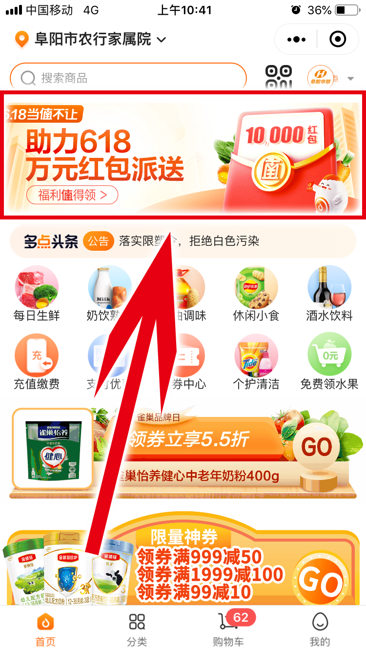 2、打開(kāi)多點(diǎn)小程序,首頁(yè)點(diǎn)擊進(jìn)入紅包專(zhuān)區查看中獎結果,進(jìn)入活動(dòng)頁(yè)面進(jìn)行領(lǐng)取、提現。