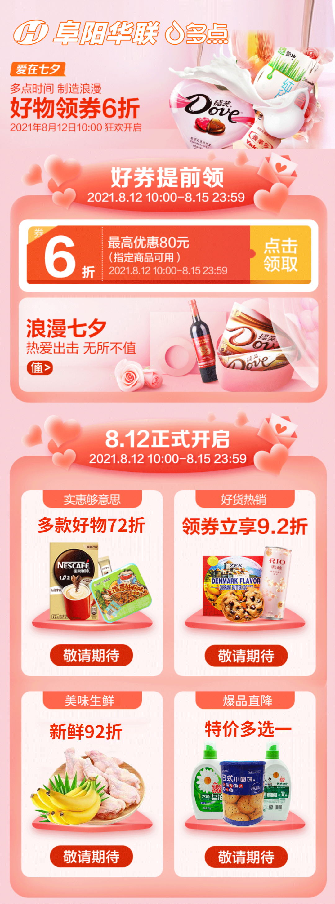 “愛(ài)在七夕” | 阜陽(yáng)華聯(lián)&多點(diǎn)App,全場(chǎng)好物甜蜜暴擊!點(diǎn)進(jìn)來(lái)!